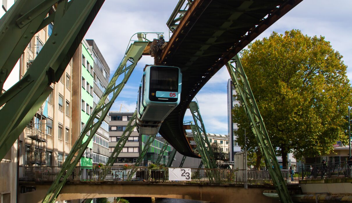 Die Bahn entstand aus einem geografischen Problem. Ende des 19. Jahrhunderts boomten die Industriestädte Barmen und Elberfeld, doch das enge, gewundene Wuppertal bot keinen Platz für traditionelle Straßenbahnen oder U-Bahnen. Der Ingenieur Eugen Langen schlug eine geniale Lösung vor: Wenn am Boden kein Platz war, müsse man eben die Luft nutzen. Die daraus resultierende 13,3 Kilometer lange Strecke schwebt auf dem Großteil ihres Weges etwa 12 Meter über dem Fluss und schlängelt sich wie ein „stählerner Drache“ durch das Herz der Stadt.